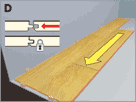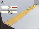 Por motivos ópticos, los suelos laminados Kronoswiss deben colocarse siempre en dirección longitudinal a la fuente principal de luz: Antes de la colocación debe calcularse la anchura de la última fila de paneles (no debiendo ésta ser menor de 5 cm). Eventualmente ya debe recortarse la primera fila de paneles.